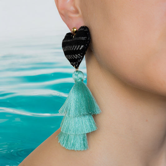 Gewebtes Tuch "Alma" aus Mexiko mit Quasten - schwarz-weiß