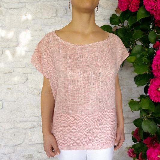 Sommerbluse "Flora" aus Mexiko - pink-grau