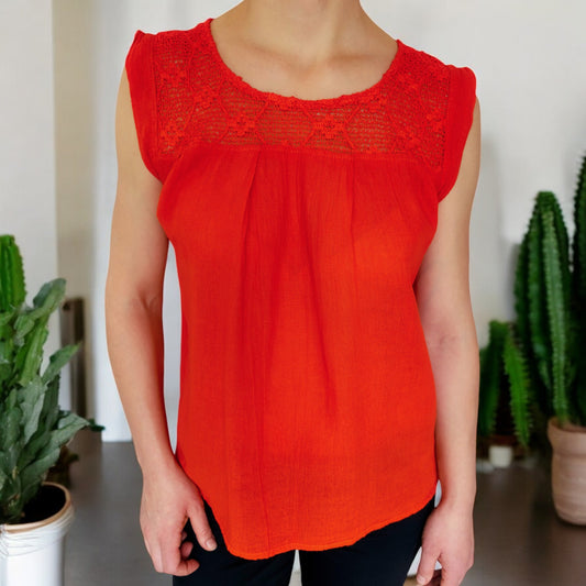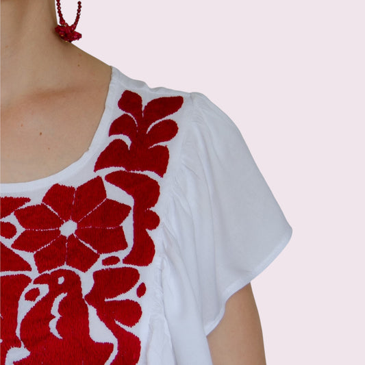 Handbestickte Bluse "Patricia" aus Mexiko - rot