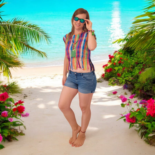 Gewebte Bluse mit Fransen "Caribe" aus Mexiko - bunt