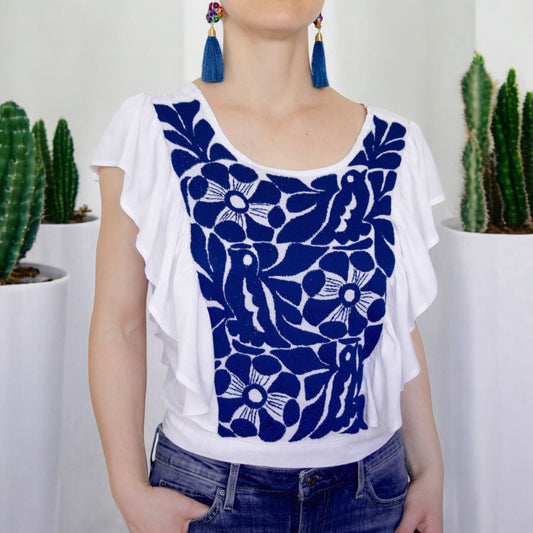 Handbestickte Bluse "Mariposa" aus Mexiko - dunkelblau