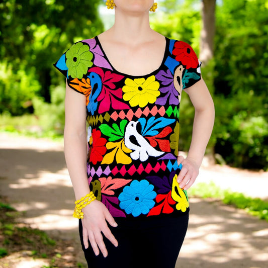 Handbestickte Bluse "Mariposa" aus Mexiko - bunt