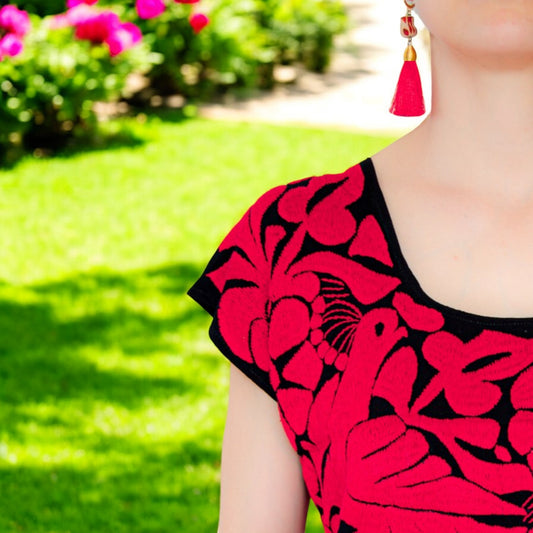 Handbestickte Bluse "Mariposa" aus Mexiko - rot