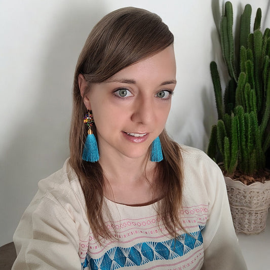 Gewebte Kaftan-Bluse "Luna" aus Mexiko - blau