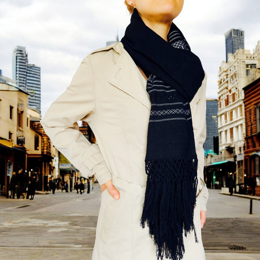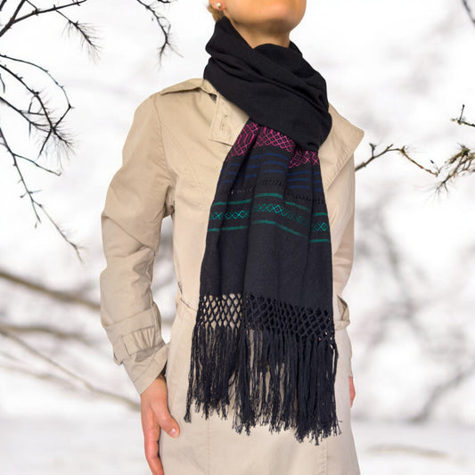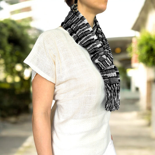 Gewebter Wendeschal "Lorena" aus Mexiko - schwarz-weiß