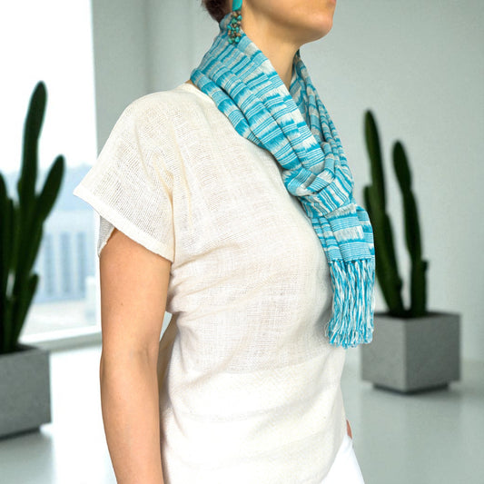 Gewebter Wendeschal "Lorena" aus Mexiko - hellblau-weiß
