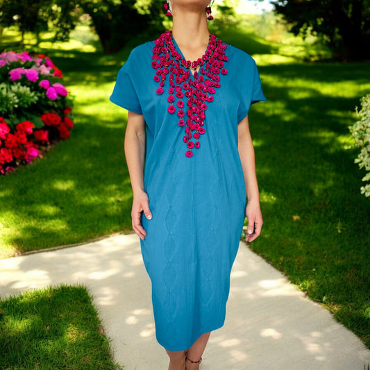 Blusenkleid, mexikanisches Bata-Kleid "Rhombus" - azurblau