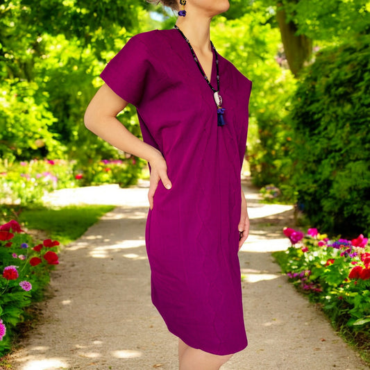 Blusenkleid, mexikanisches Bata-Kleid "Rhombus" - pflaume