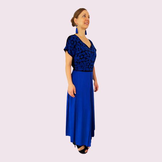 Handbesticktes Kleid "Sofia" aus Mexiko - königsblau-schwarz